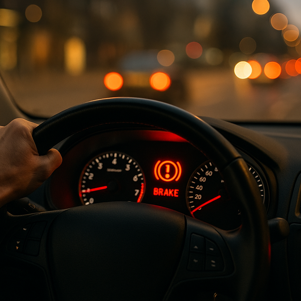 - 계기판에 브레이크 경고등이 켜진다
