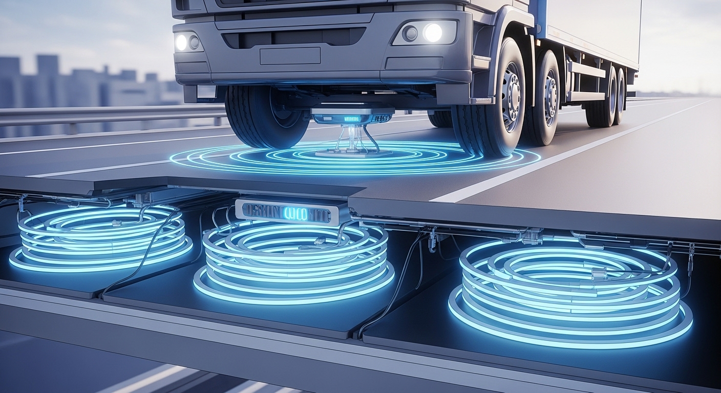 - 2. 유도 충전 기술: 도로 하부의 8자 형태 코일이 자기장을 생성하고, 차량 하부의 수신부가 이를 전기로 전환하는 방식입니다.